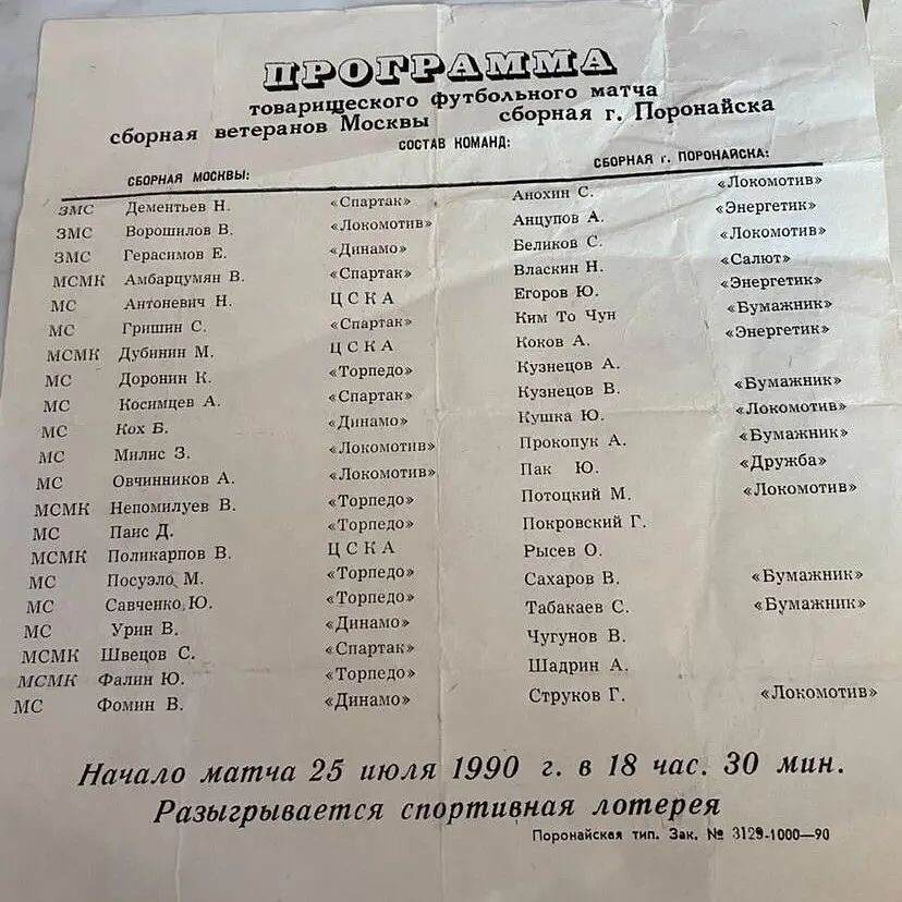 35 лет назад, в июле 1990 года на Сахалине гостила ветеранская сборная команда СССР по футболу.