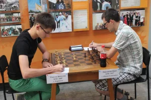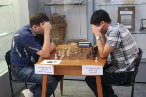 Международный мастер Александр Семенюк (Хабаровск) еще не знает, что проиграет партию Дмитрию Егорову (Якутск).