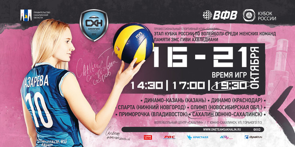 С 16 по 21 октября в Южно-Сахалинске пройдет второй круг предварительного этапа Кубка России по волейболу среди женских команд. Игры можно увидеть в ВЦ «Сахалин» (ул. Горького, 7/3).