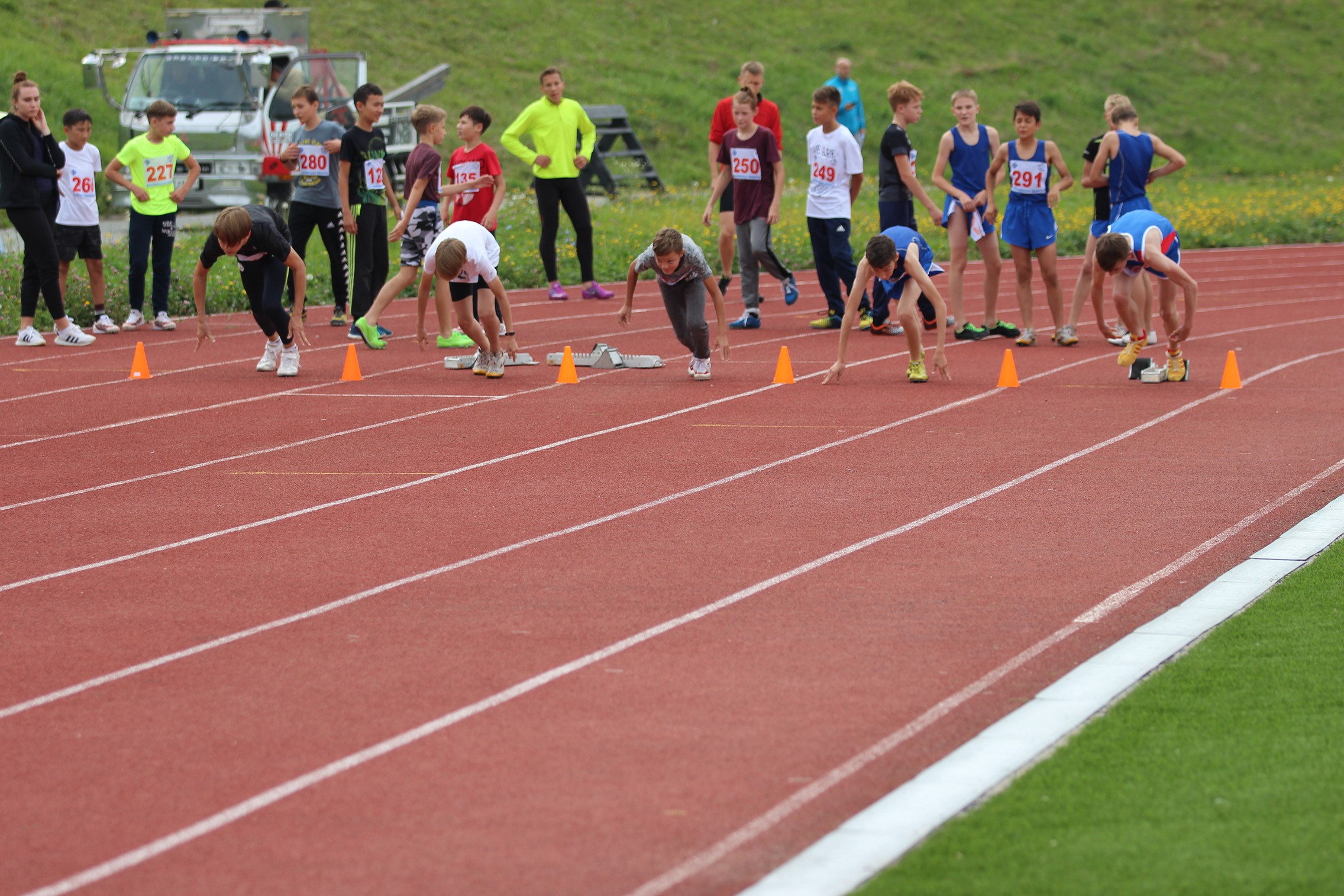Затем судейская коллегия огласила регламент соревнований. В первый день были запланированы забеги на 60 м, прыжки в длину (юноши), метание мяча (девушки) и эстафеты 4 по 100 метров. Во второй соревновательный день юноши метали мяч и бежали 800 метров, а девушки прыгали в длину и определили самых быстрых на дистанции 600 метров.