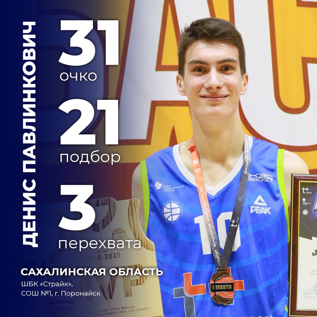 5. Денис Павлинкович, MVP Чемпионата ШБЛ «КЭС-БАСКЕТ» Сахалинской области (ШБК «Страйк», МБОУ СОШ №1, г. Поронайск).