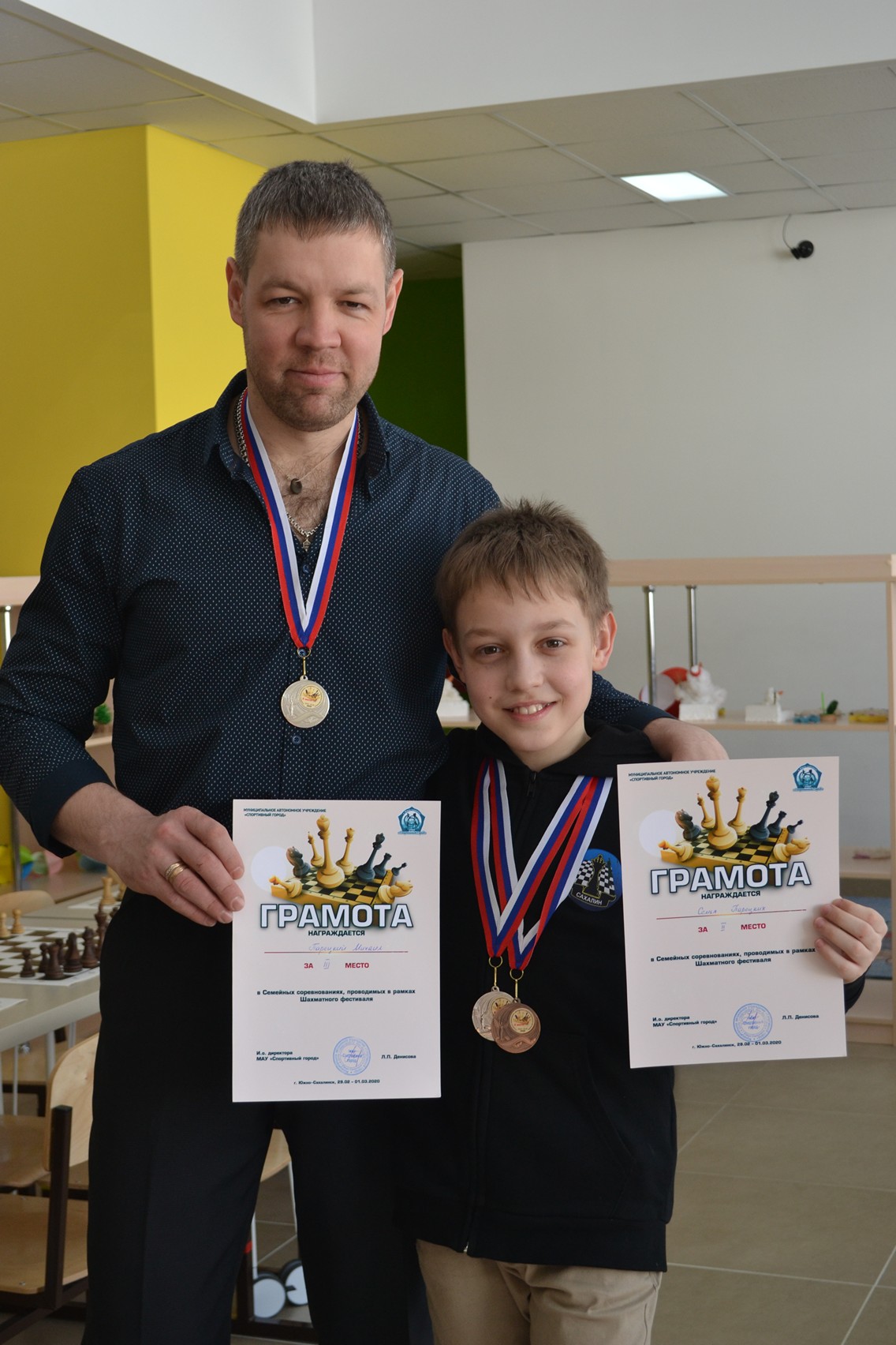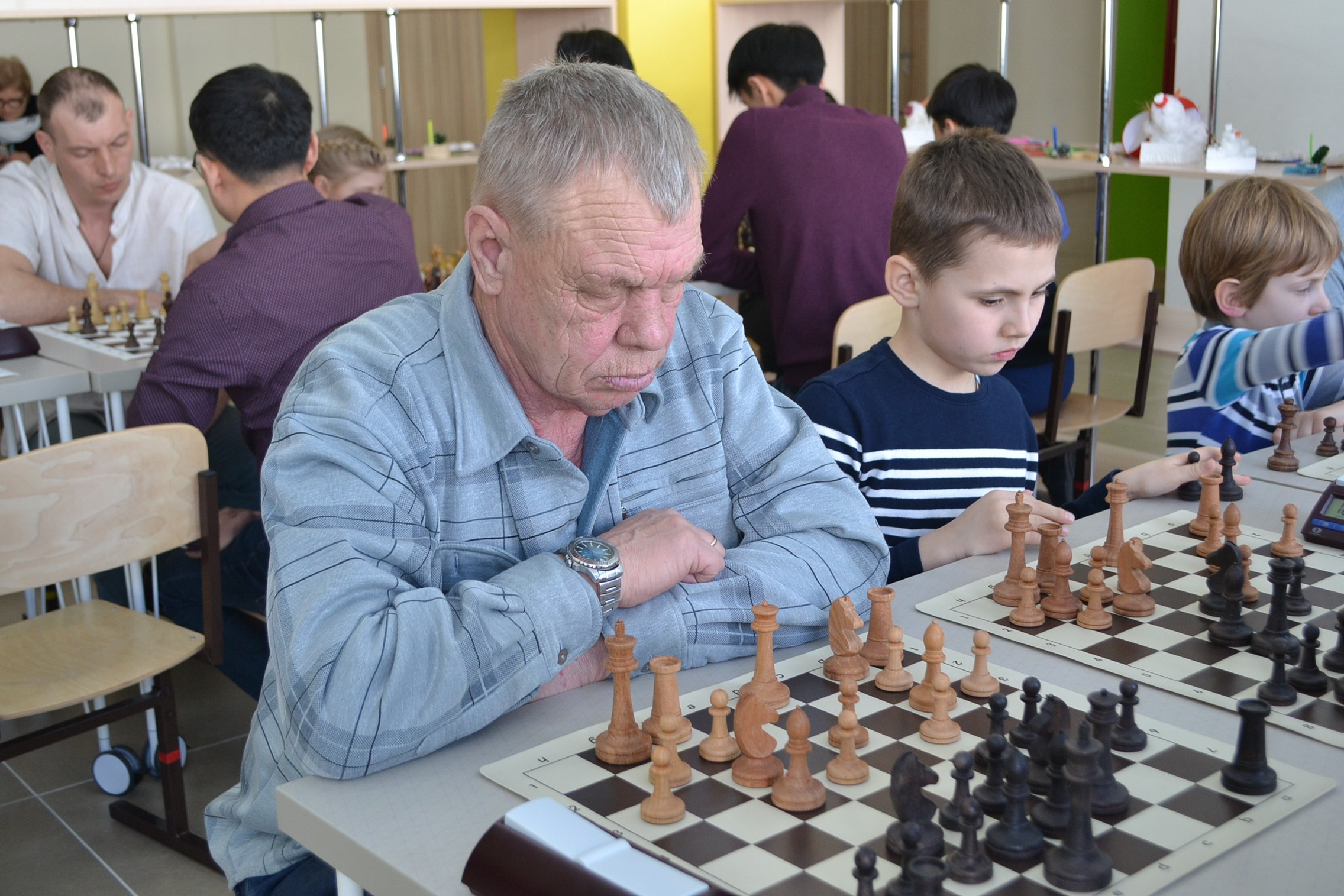 В Южно-Сахалинске прошел семейный турнир по шахматам. Его участниками стали 25 команд, в составе которых играли школьник и взрослый (папа или мама, а также бабушка или дедушка).
