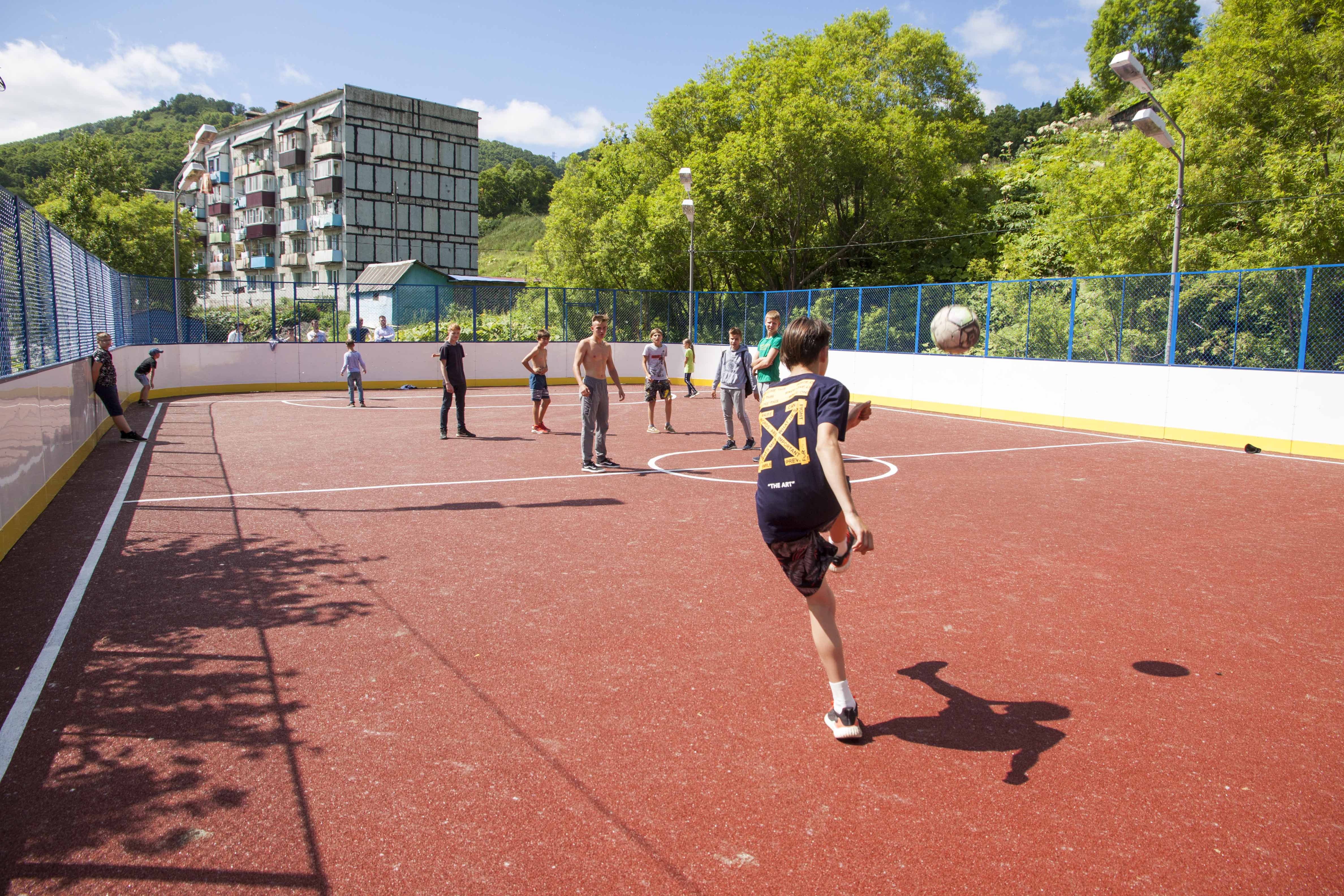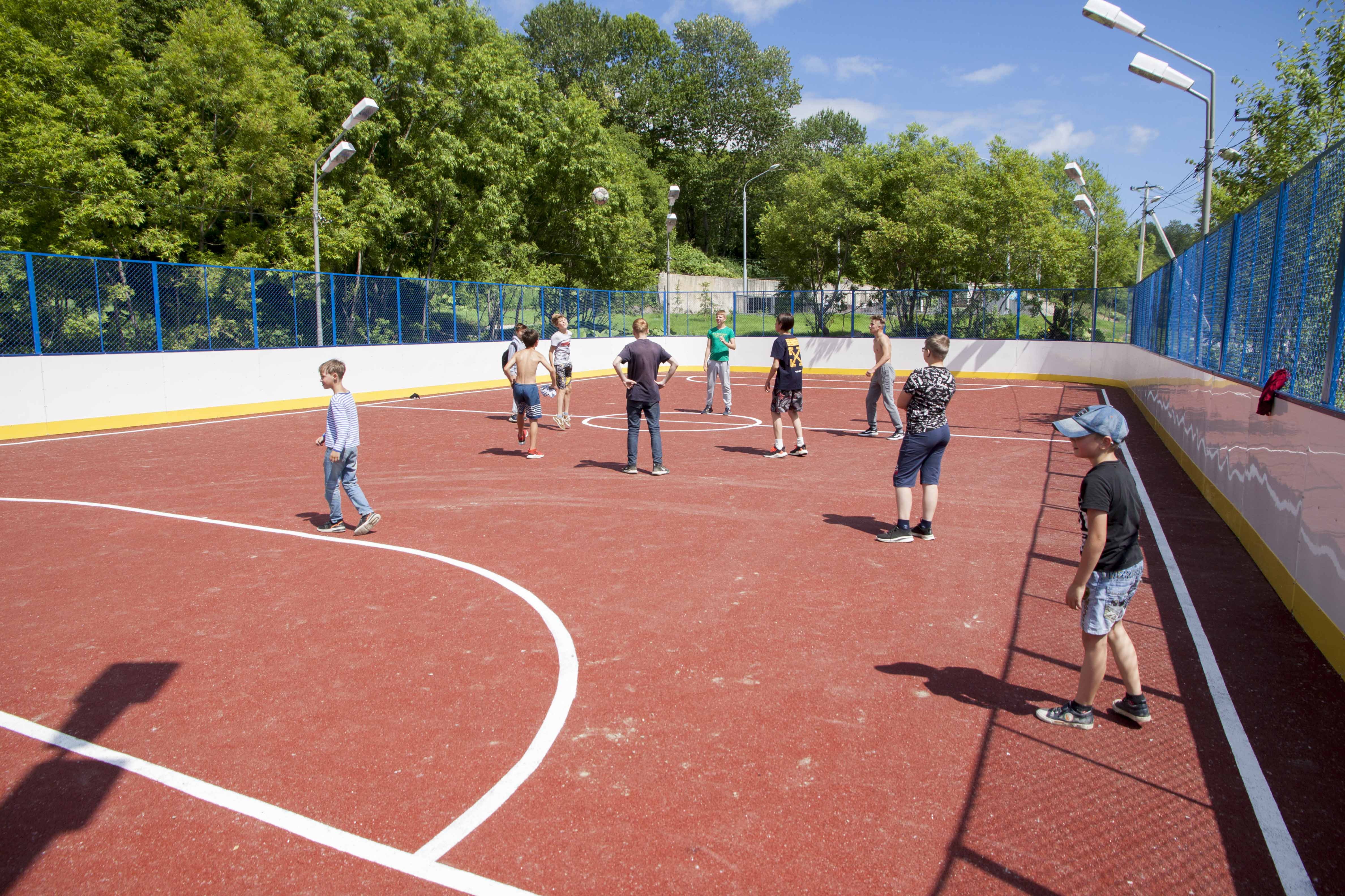 Как сообщает пресс-центр департамента по делам молодежи, спорту и туризму администрации Южно-Сахалинска, на месте старой «коробки», построенной в рамках областного проекта «Спорт против подворотни», появилась современная спортивная площадка с возможностью круглогодичного проведения занятий, благодаря мягкому искусственному покрытию из резиновой крошки.