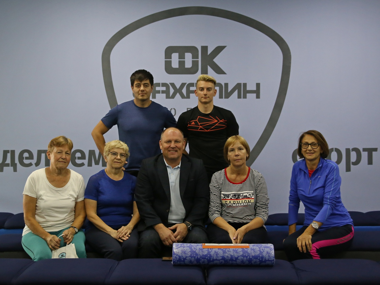 Ежемесячно в «СШ «Сахалин» определяют участника проекта, посетившего наибольшее количество тренировочных занятий. В сентябре победителем акции стала Галина Александровна Шустова, которой генеральный директор спортучреждения Евгений Крючков вручил коврик для йоги.