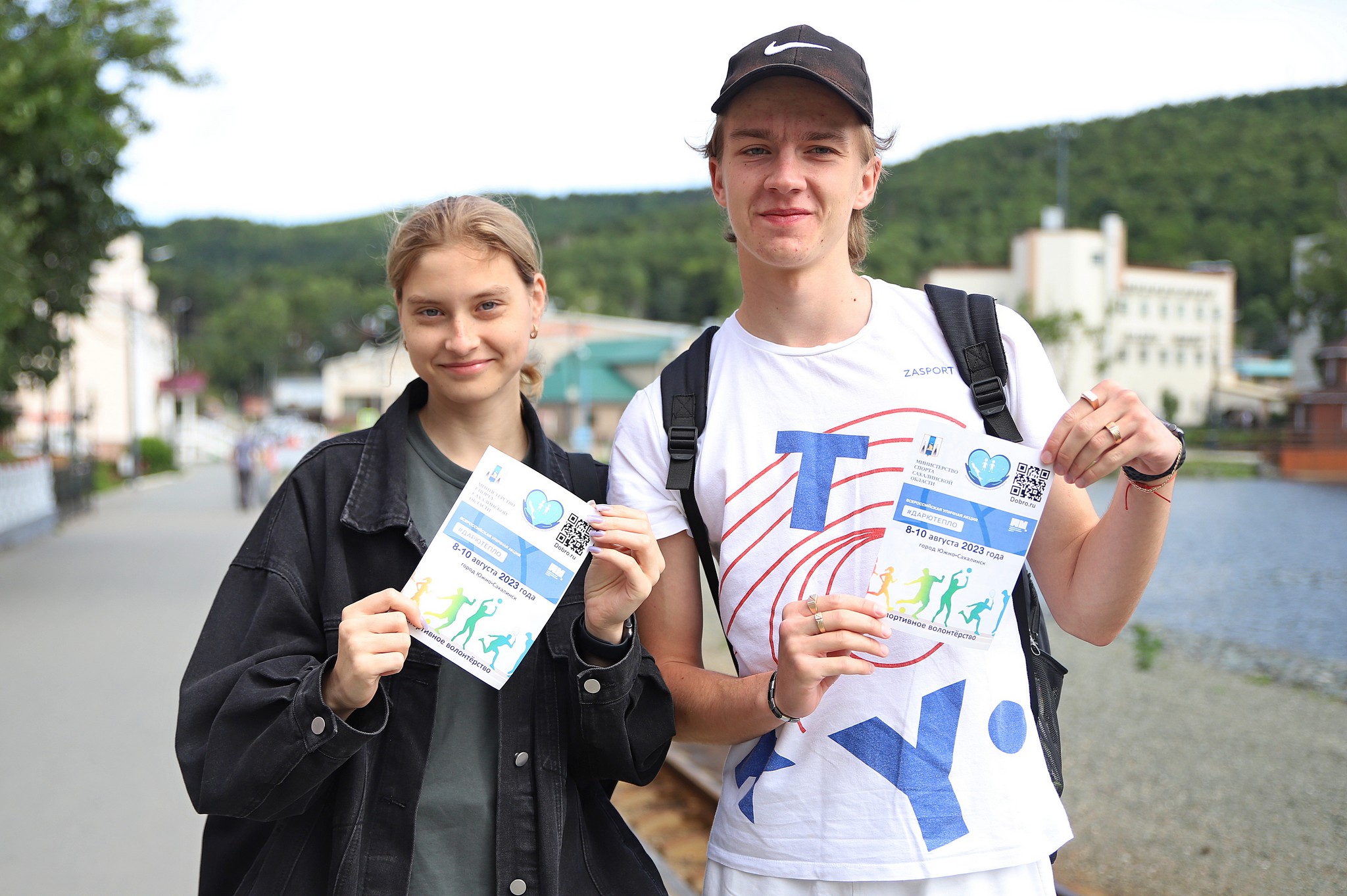 Волонтёры приглашали ребят вступить в спортивное волонтёрское движение при учреждениях спорта Сахалинской области.