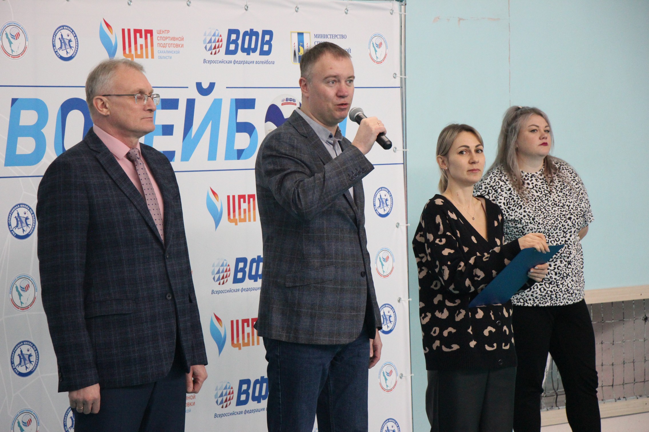 На церемонии открытия участников и гостей волейбольного праздника приветствовали заместитель министра спорта Сахалинской области Станислав Тюрин и директор ГБУ «СШ по волейболу» Сергей Кирсанов.