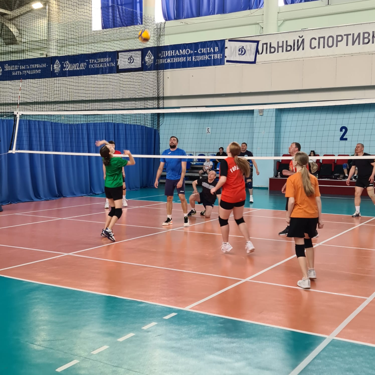На площадке царила атмосфера нешуточного азарта. Взрослые и юные волейболисты демонстрировали свое спортивное мастерство и прекрасное настроение.