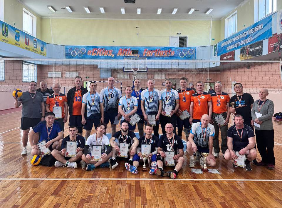 В Долинске провели турнир по волейболу, посвященный 79-й годовщине Победы в Великой Отечественной войне и памяти ветеранов локальных войн и военных конфликтов. Участниками состязаний стали ветераны возрастной группы «50+».