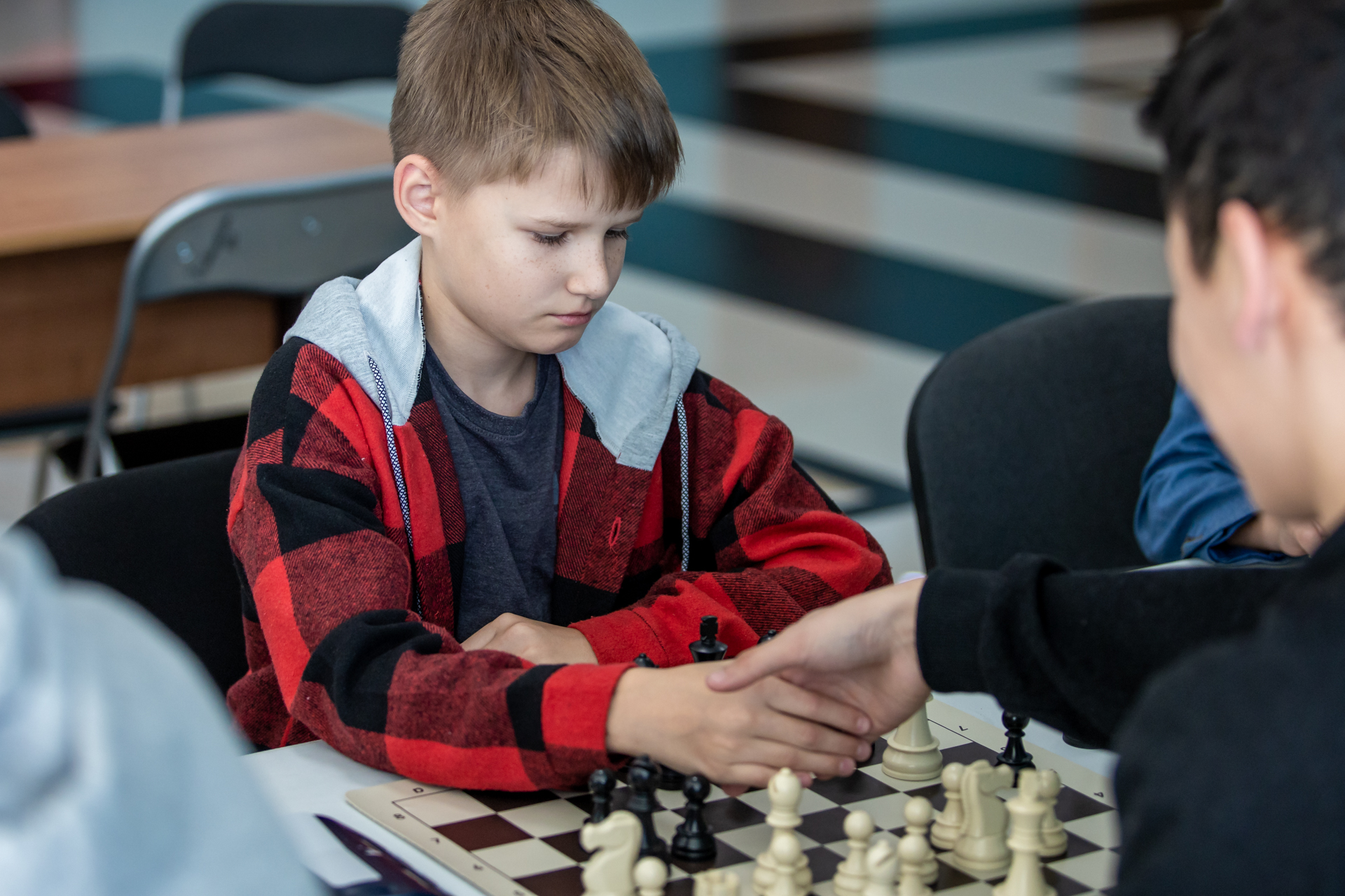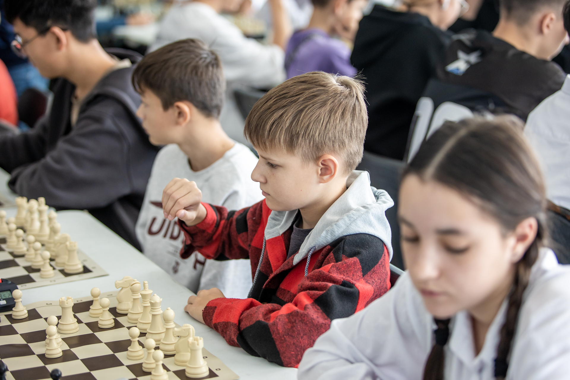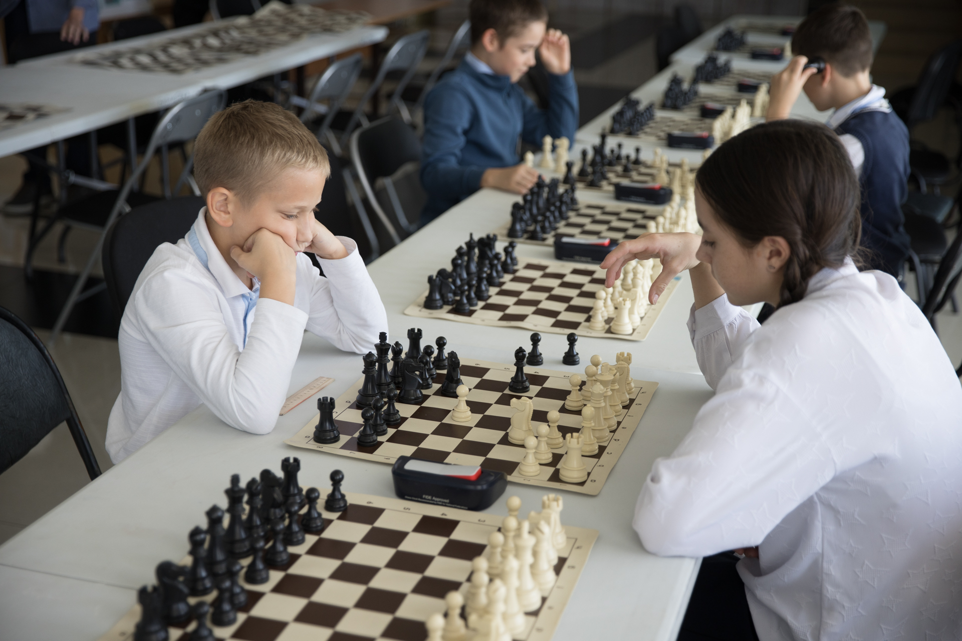 В этот раз в Курильске за праздничные столы сели 40 шахматистов из школ нескольких населенных пунктов Итурупа (Курильск, Горный, Горячие Ключи, Рейдово). Они сыграли девять туров по швейцарской системе.