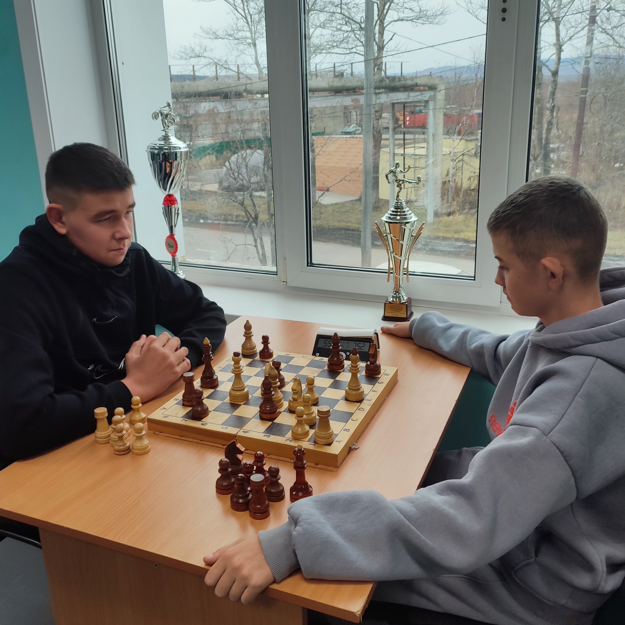 В юношеский турнир записались восемь шахматистов. Организаторы разделили их на две подгруппы. Затем состоялись серии партий за третье и первое место.