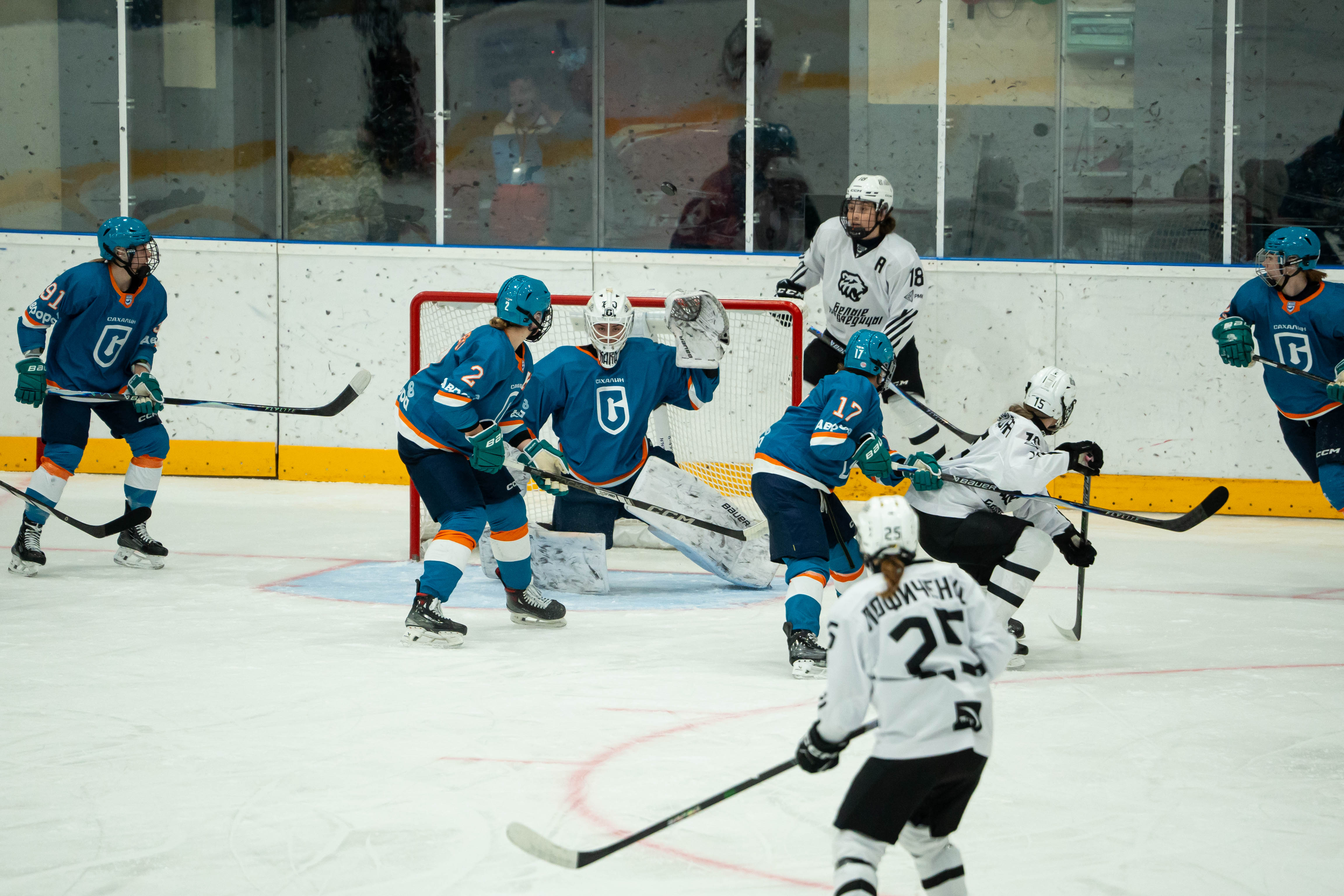 Несмотря на обидную пропущенную шайбу в первом периоде, «Сахалин» мощно ответил во второй двадцатиминутке, забросив три шайбы.