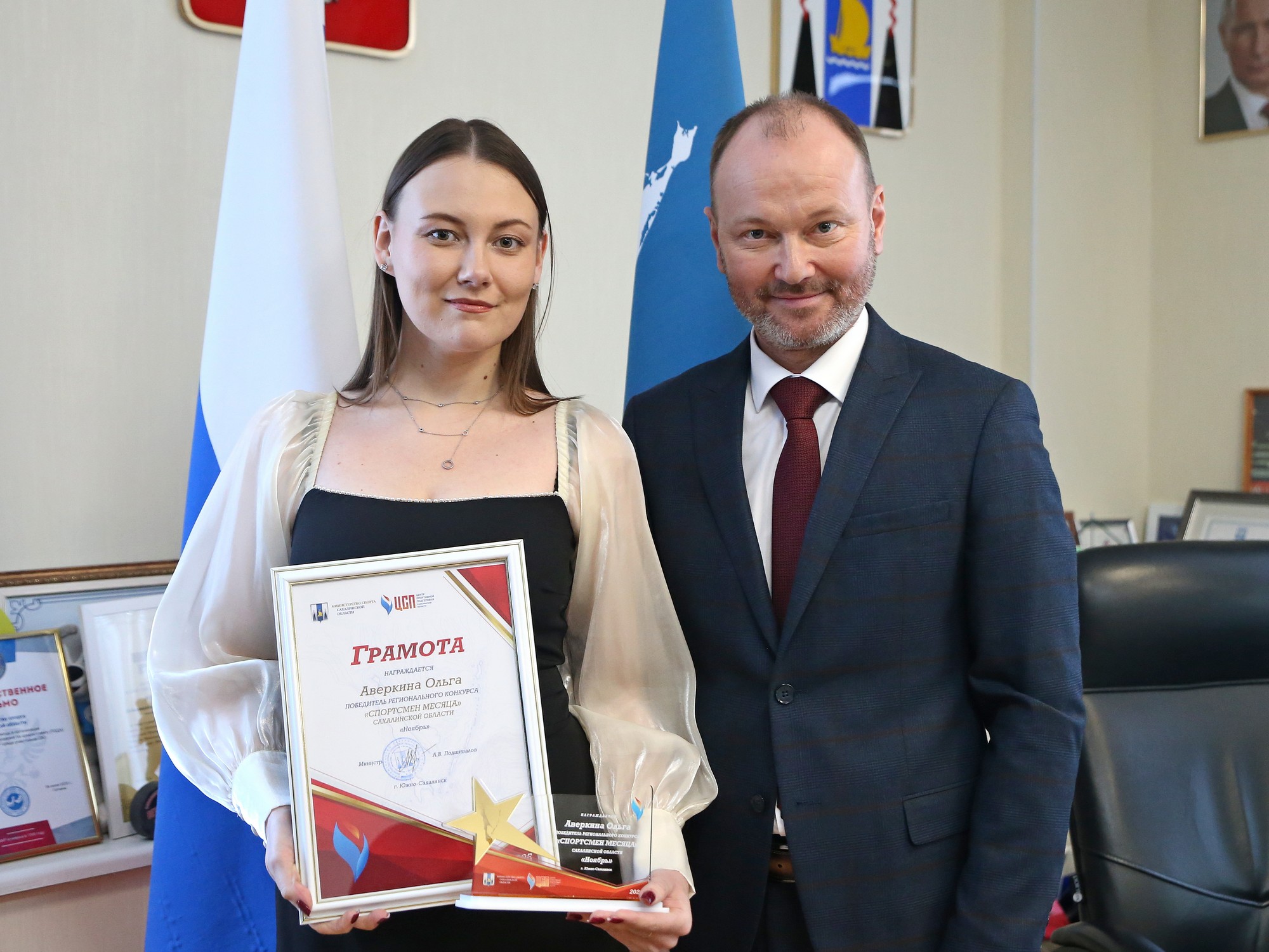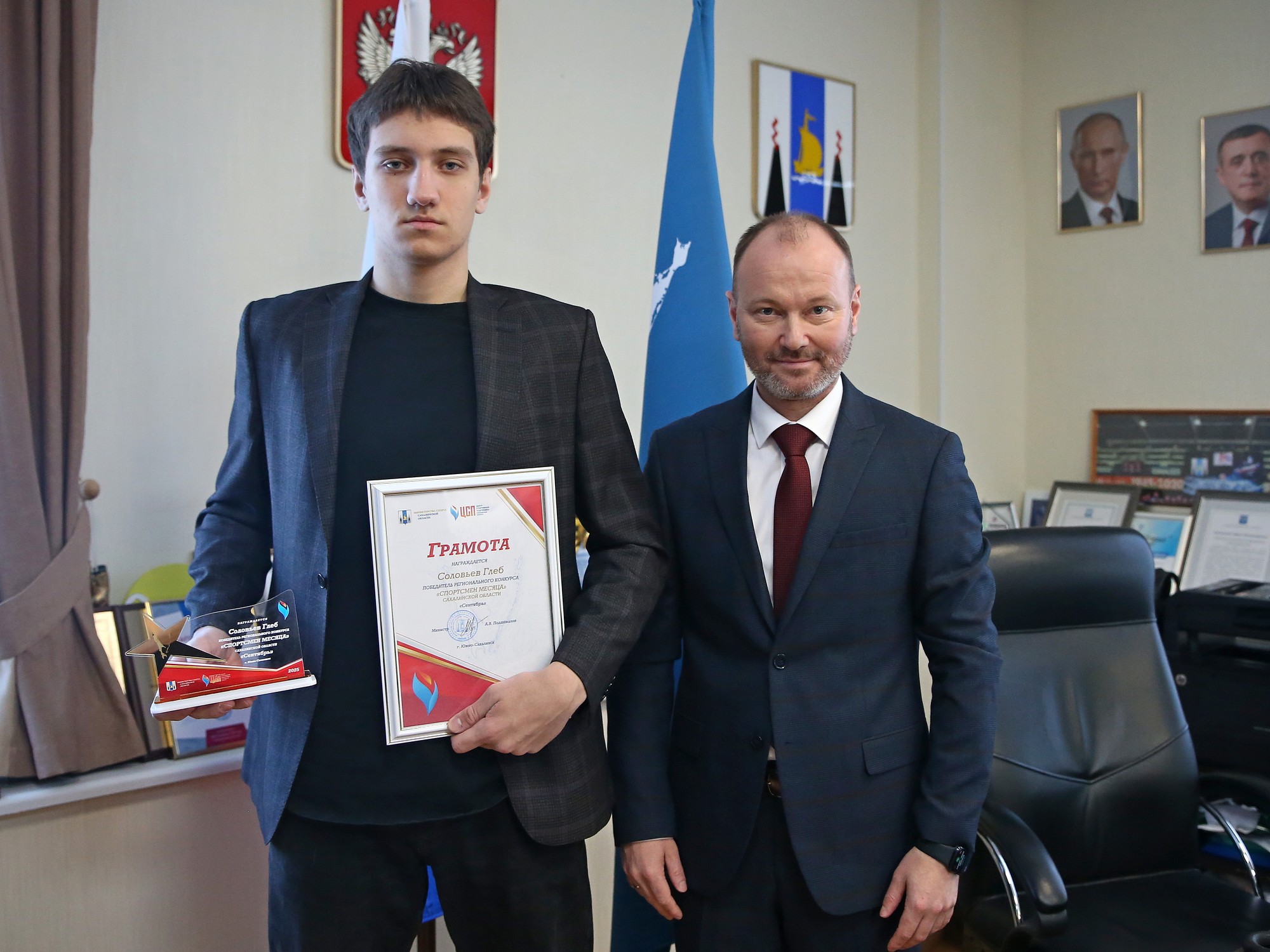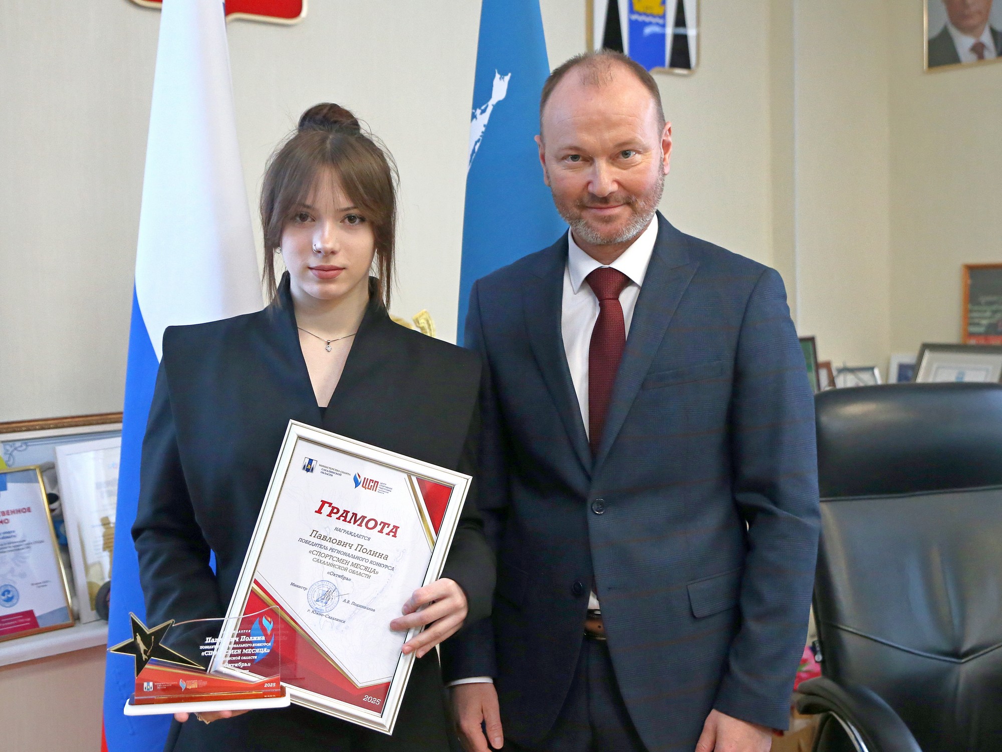 Министр спорта Сахалинской области Артём Подшивалов вручил заслуженные награды победителям региональных конкурсов «Спортсмен месяца» и «Спортсмен года-2026».