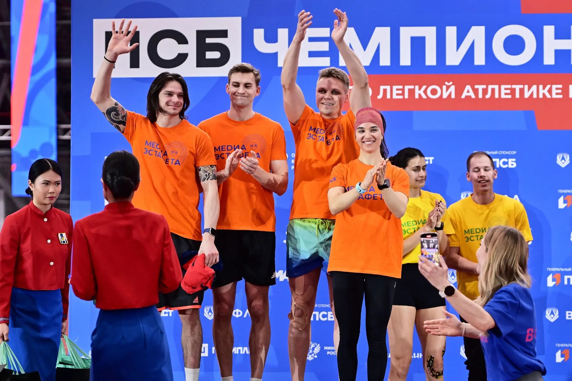 Состав шести команд по четыре человека в каждой довольно впечатляющий. На старт эстафеты вышли олимпийские чемпионы по лыжным гонкам Александр Большунов, Вероника Степанова и Денис Спицов, победитель и призер этапов Кубка мира по горнолыжному спорту, участник Олимпийских игр Александр Хорошилов, двукратный чемпион России в беге на 200 метров и победитель Игр стран БРИКС Андрей Лукин и другие известные спортсмены, а также журналисты, блогеры и видеооператоры, без которых сложно представить масштабы славы именитых спортсменов.