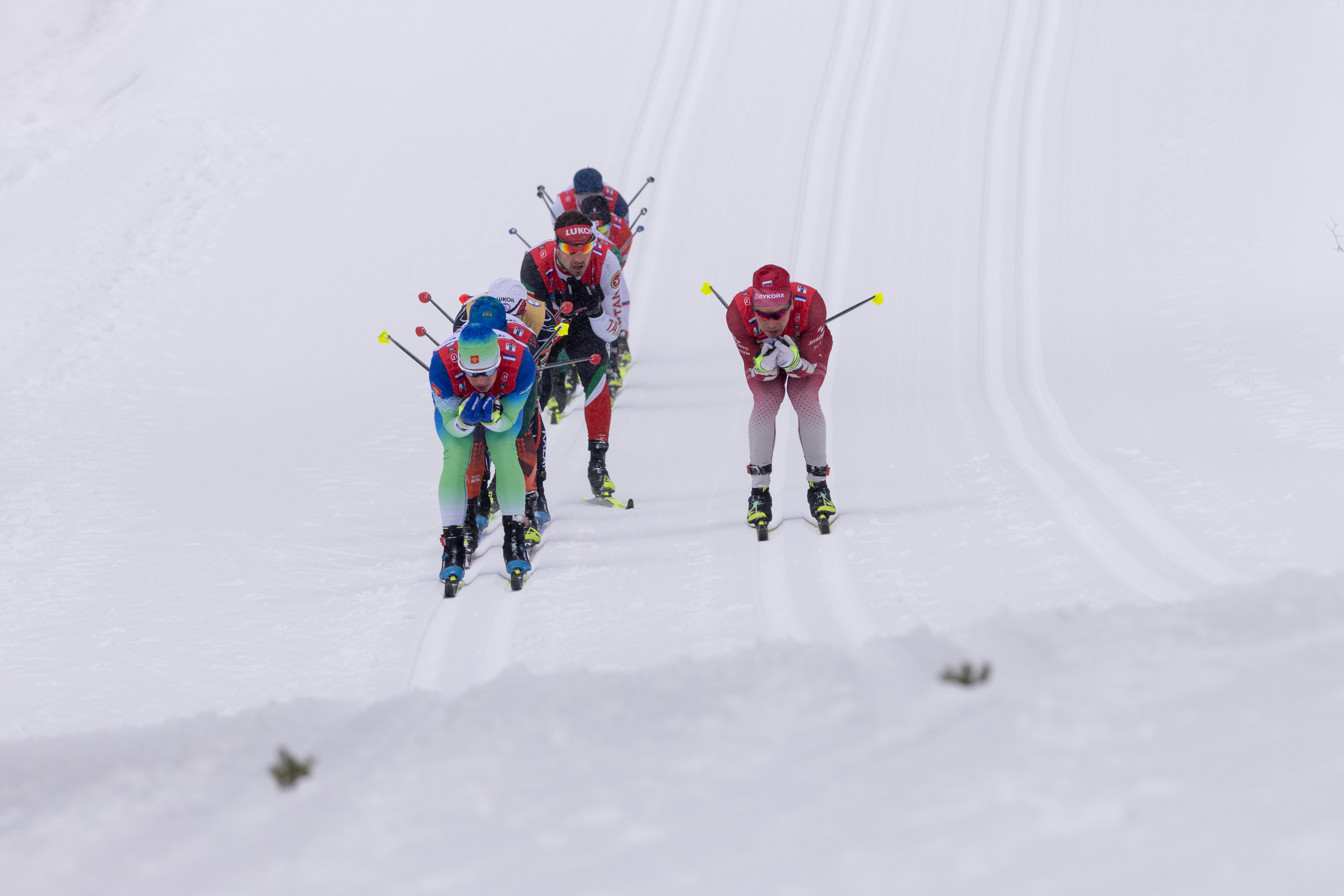 В этот раз эстафета началась с драмы. Один из фаворитов отвалился уже в начале гонки. У Виктор Жуля (Красноярский край) в небольшом столкновении случайно вырвали крепление на лыже, и ему понадобилось довольно много времени, чтобы привести инвентарь в порядок. Все остальные успели далеко умчаться вперед. Жуль не сошел, но догнать пелотон было уже нереально.