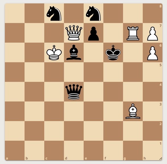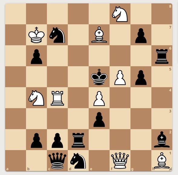 В первом туре я решил почти все задачи, и у меня остался один этюд на 40 минут. Разгадать полностью его у меня не получилось, но на последних минутах я написал все «красивые» варианты. И один из них был в ответе, за что я и получил 5 баллов. В итоге за первый тур - 30/30.