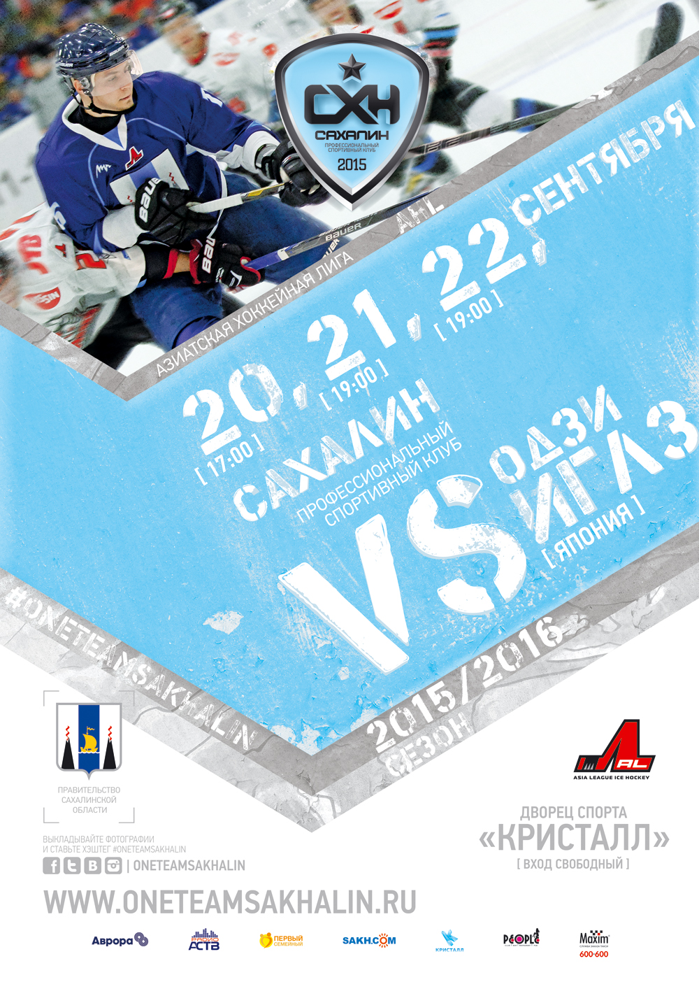 20, 21 и 22 сентября хоккейная команда профессионального спортивного клуба «Сахалин» на своем льду примет «Одзи Иглз» в рамках регулярного чемпионата Азиатской хоккейной лиги.